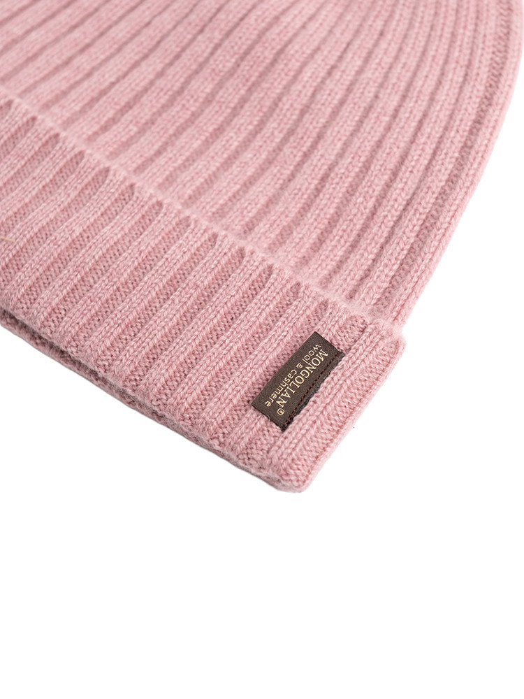 Miękka czapka wykonana w 100% z kaszmiru, wyróżniająca się delikatną, prążkowaną strukturą. Subtelny, pudrowo-różowy odcień dodaje lekkości i świeżości, jednocześnie zachowując elegancki, stonowany charakter.
