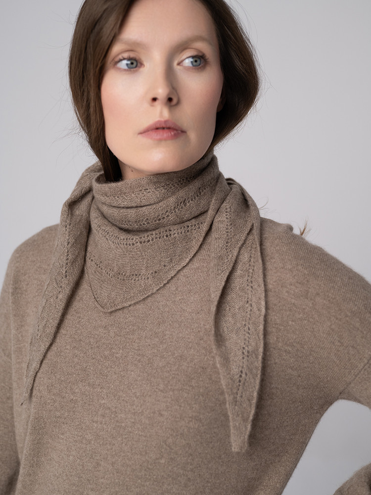 Elegancka chusta wykonana w 100% z najwyższej jakości kaszmiru mongolskiego. Ażurowy splot podkreśla jej lekkość oraz dodaje subtelnej, kobiecej finezji. Naturalne włókno kaszmirowe wyróżnia się właściwościami termoregulacyjnymi – chroni przed chłodem, jednocześnie zapobiegając przegrzaniu. Jest antyalergiczne, dzięki czemu chusta sprawdzi się u osób o wrażliwej skórze. Można ją nosić jako stylowy szal na szyi lub zawiązać na głowie jako lekką ochronę przed słońcem lub chłodem. W pełni naturalna i ponadczasowa, stanowi uniwersalny dodatek do wielu stylizacji.