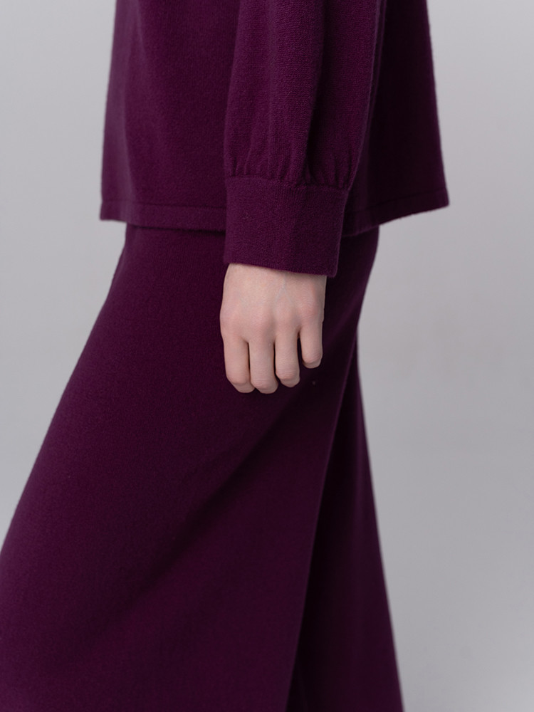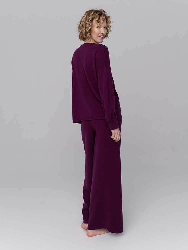 Subtelny komplet wykonany ze starannie wyselekcjonowanego kaszmiru mongolskiego. Minimalistyczna góra w zestawieniu z szerokimi spodniami tworzy spójną, swobodną i harmonijną całość. Szlachetne włókno kaszmirowe wykazuje właściwości termoregulacyjne, pomagając utrzymać optymalną temperaturę ciała niezależnie od sezonu. Naturalnie hipoalergiczne i antybakteryjne, pozostaje odpowiednie również dla skóry wrażliwej. Dopracowana forma, w której nowoczesna prostota spotyka ponadczasowy styl.