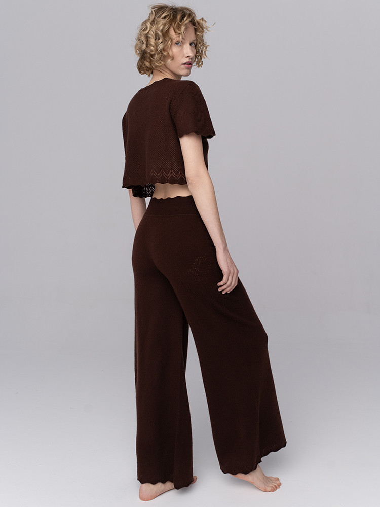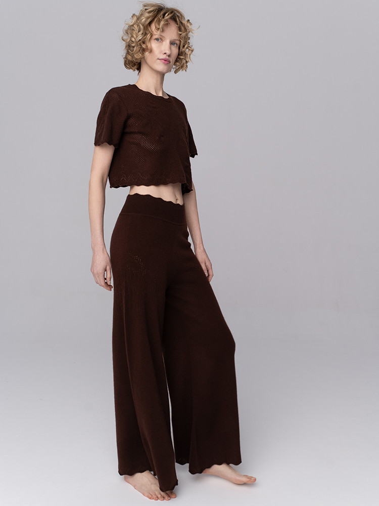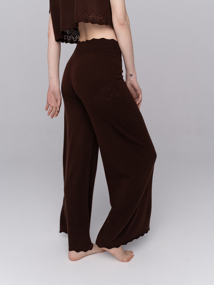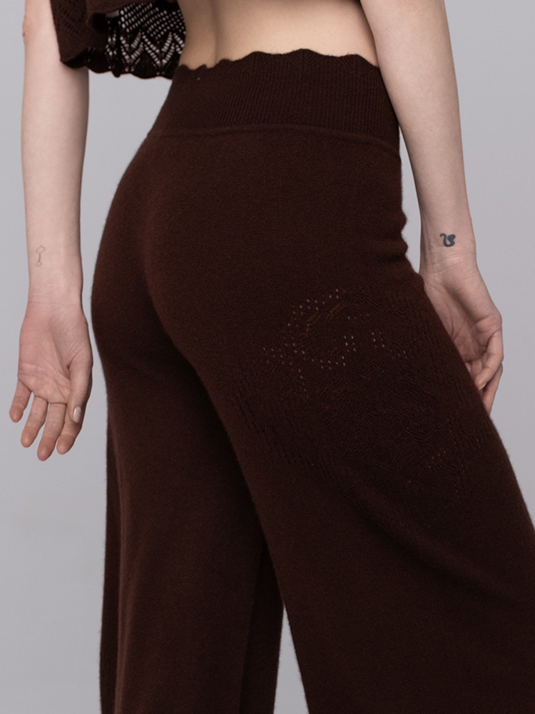 Spodnie kaszmirowe z ażurowym motywem