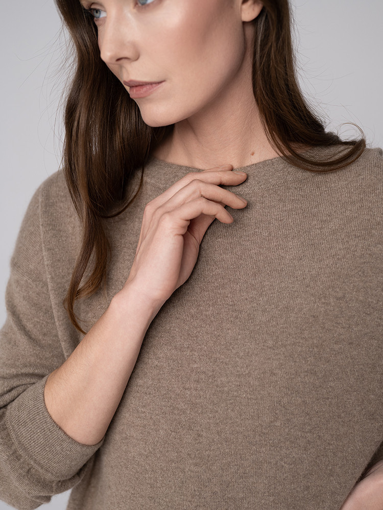 Niezwykle delikatny i miły w dotyku komplet, wykonany w 100% z luksusowego kaszmiru. Subtelnie otula sylwetkę i zachwyca naturalną lekkością.