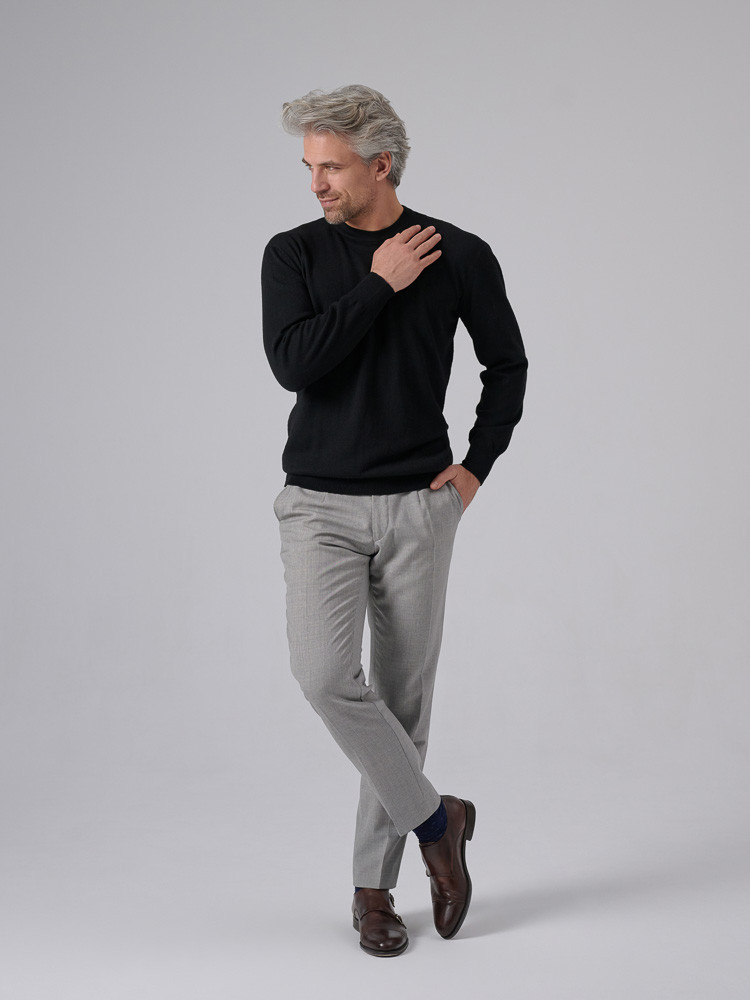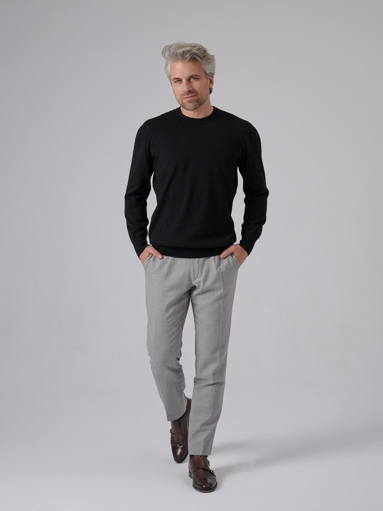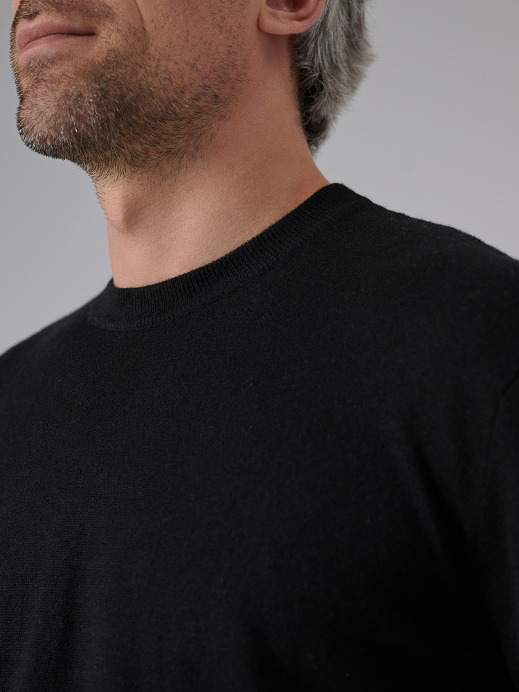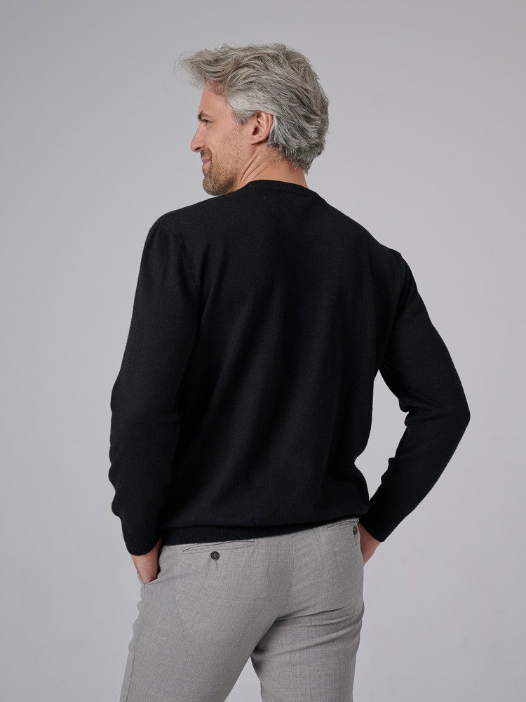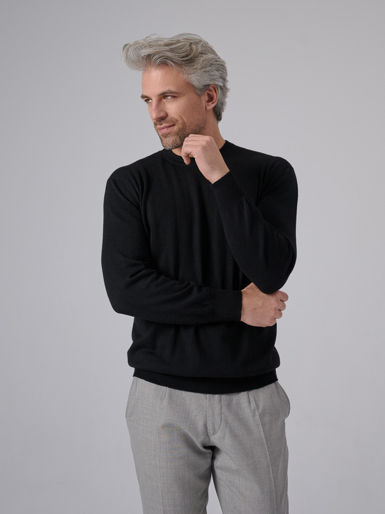 Męski sweter z mongolskiej wełny owczej o klasycznym kroju. Dostępny w eleganckich kolorach czerni i granatu.